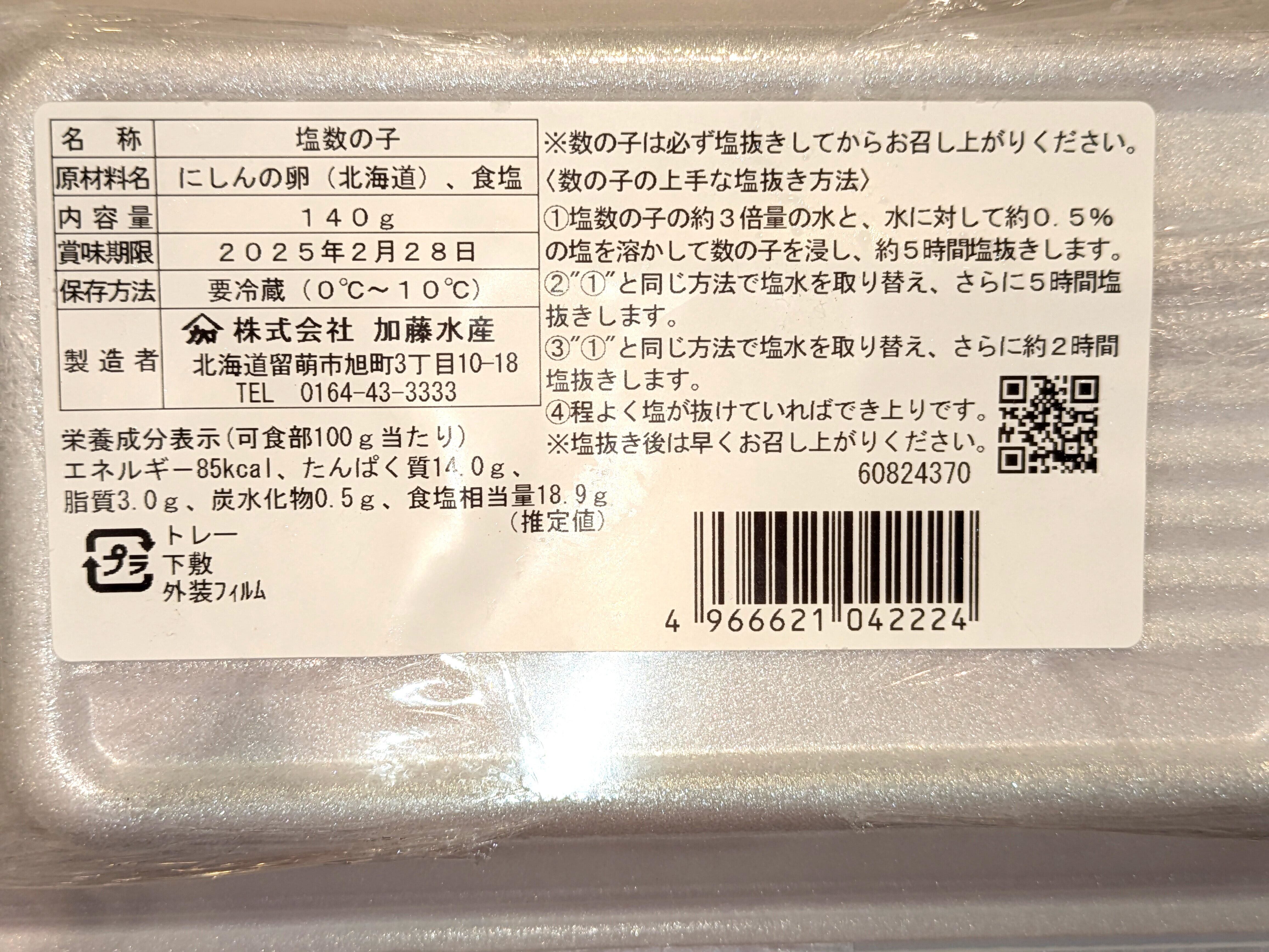 ・北海道産塩数の子140g(大羽の大きな折れです。)